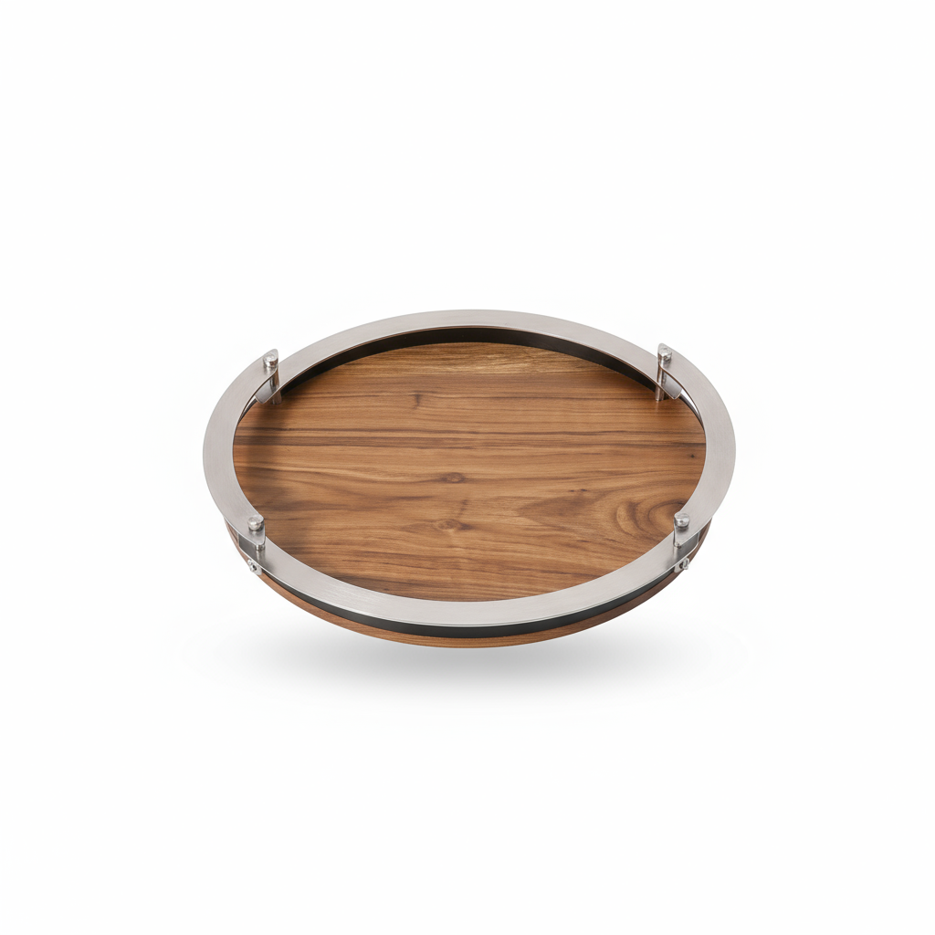 Edles Servierbrett/Tablett aus massivem Walnussholz mit umlaufenden Stahlgriffen. Die natürliche Maserung trifft auf kühlen Metallakzent – robust, stilvoll und ideal zum Servieren von Kaffee, Kuchen, Canapés oder als dekorative Basis für Kerzen & Vasen. Die erhöhte Griffkante sorgt für sicheren Halt und schützt vor Abrutschen.