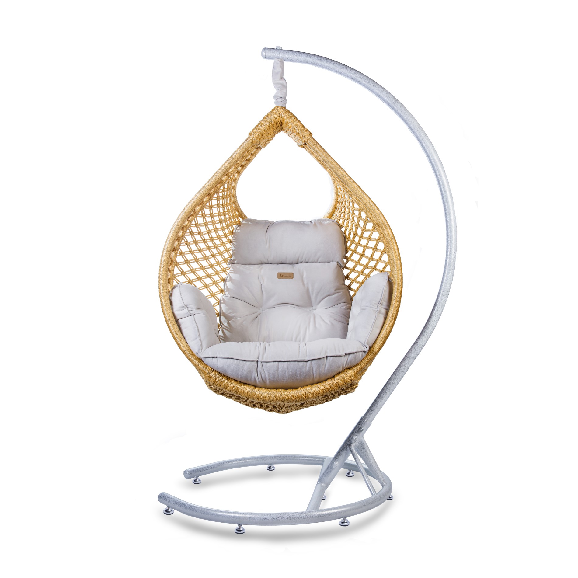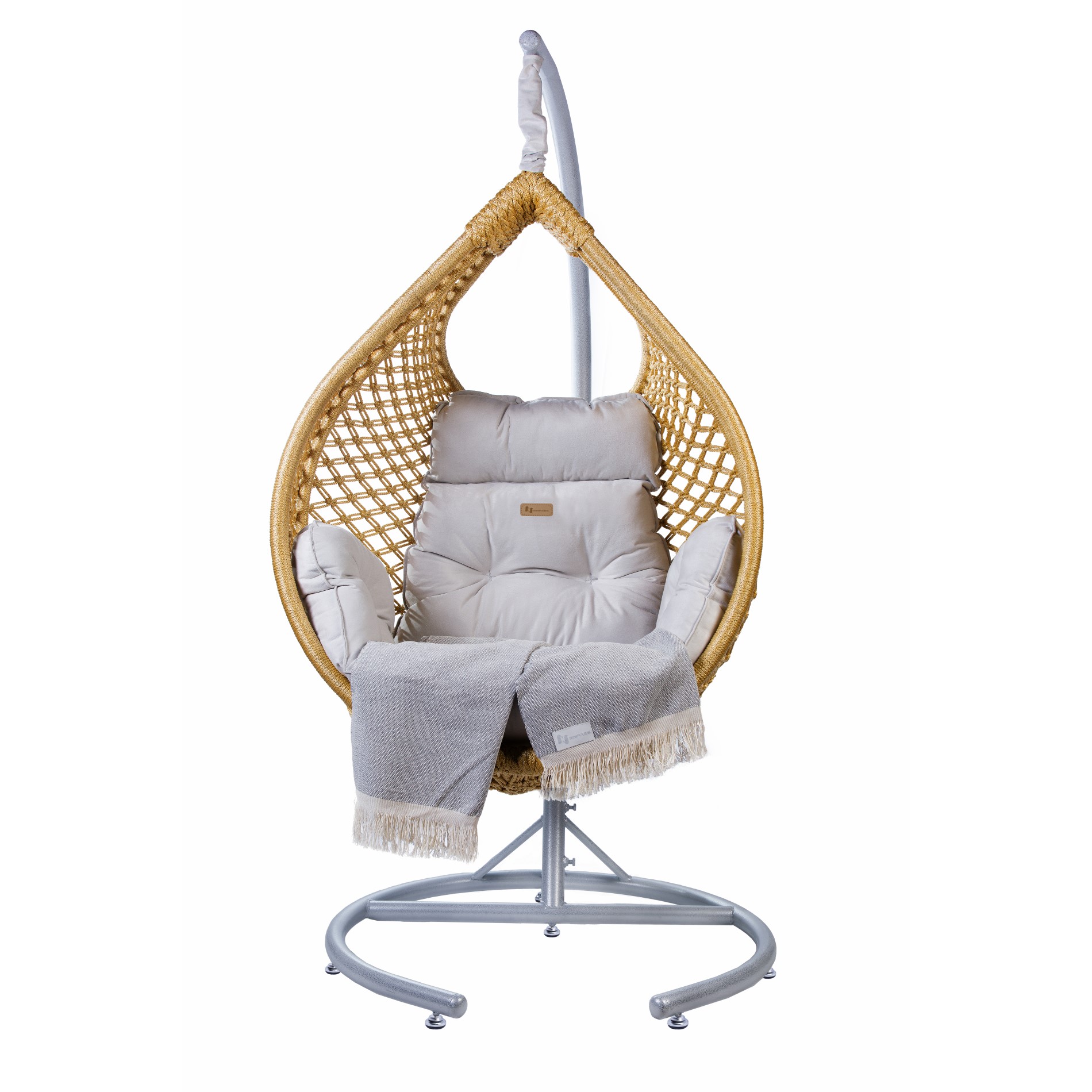 Mit einer Belastbarkeit von 220 kg eignet sich dieser Hängesessel für den Innen- und Außenbereich gleichermaßen. Das stabile Gestell aus pulverbeschichtetem Stahl, handgewebte Stoffe und robuste Seile sorgen für eine lange Lebensdauer. Zusätzlich schützt die wasserdichte Abdeckung den Sessel vor Regen, Staub und Sonnenstrahlen, sodass Sie ihn sorgenfrei draußen verwenden können.
