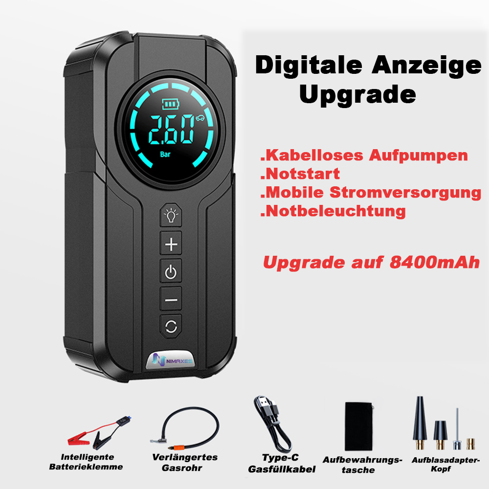 Nimaxes 3-in-1 Multifunktionale Wireless-Luftpumpe mit Starthilfe und Powerbank