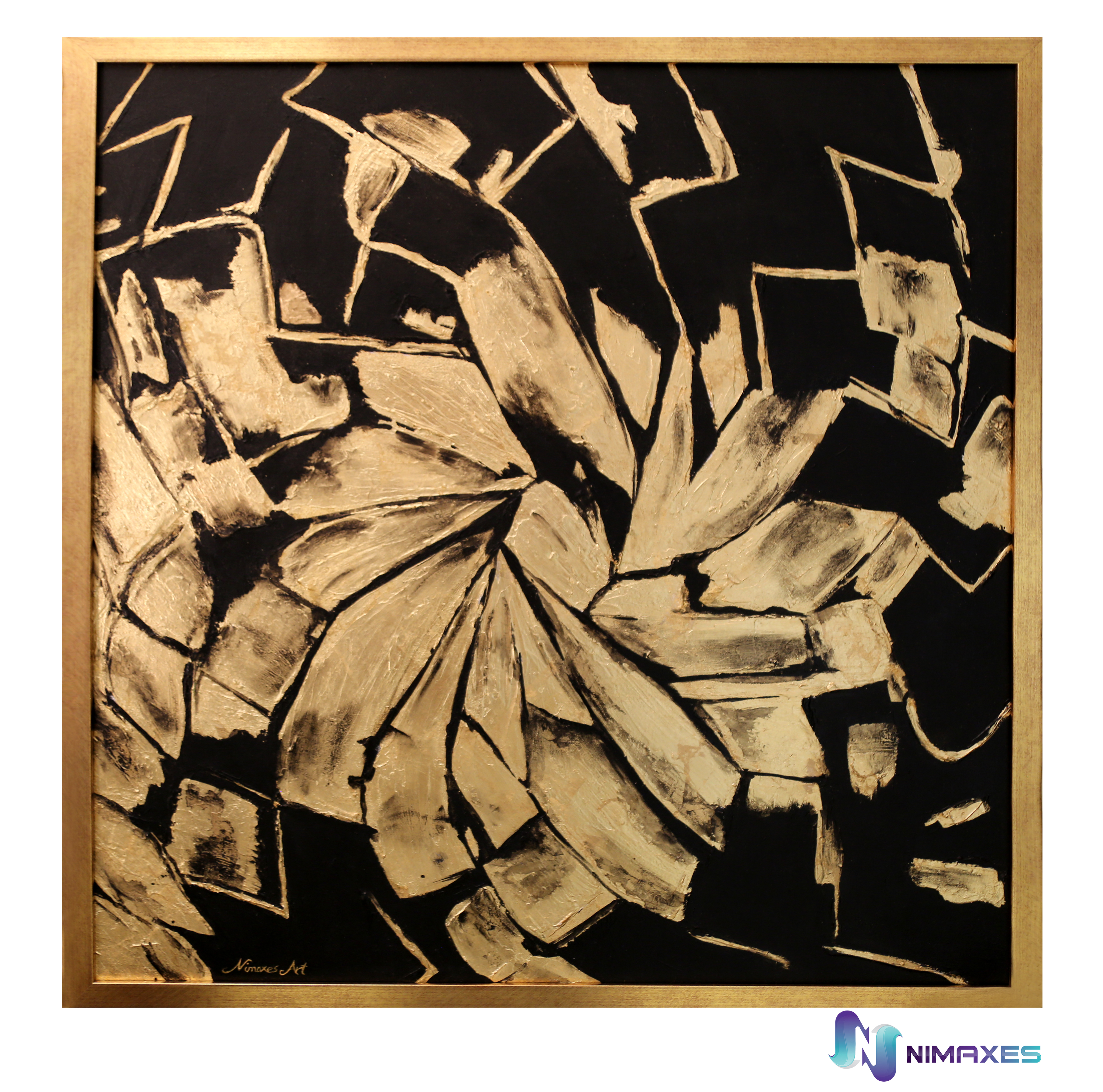 - Material: acrylic paint, texture, gold leaf, canvas