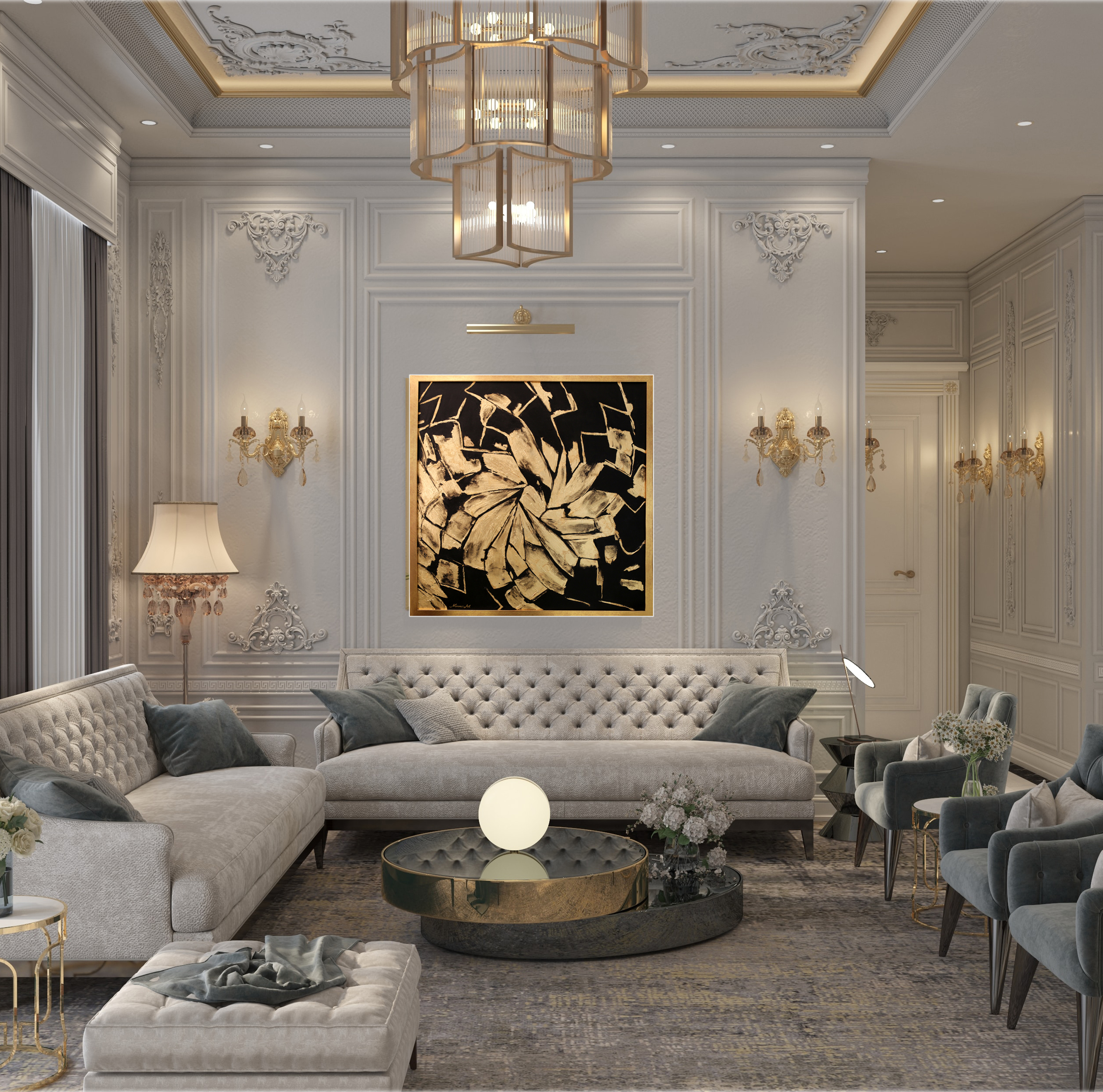 1-3 DaysAbstract painting of flower design with gold leaf